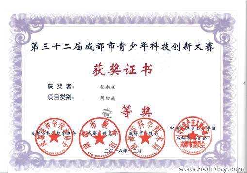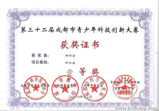 2016年成都市青少年科技创新大赛是由成都市科学技术协会、成都市教育局、成都市科技局、成都市团委等四个单位共同主办的,内容包括:创造发明、科学论文、信息学(计算机)、少儿科学幻想画等比赛项目。我们将按照青少年科技创新大赛的要求,进一步拓宽我们科技教育的渠道,努力把科技教育打造成我们学校的又一特色。