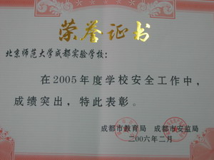 我校再次被评为“2005年度成都市教育系统安全工作先进单位”