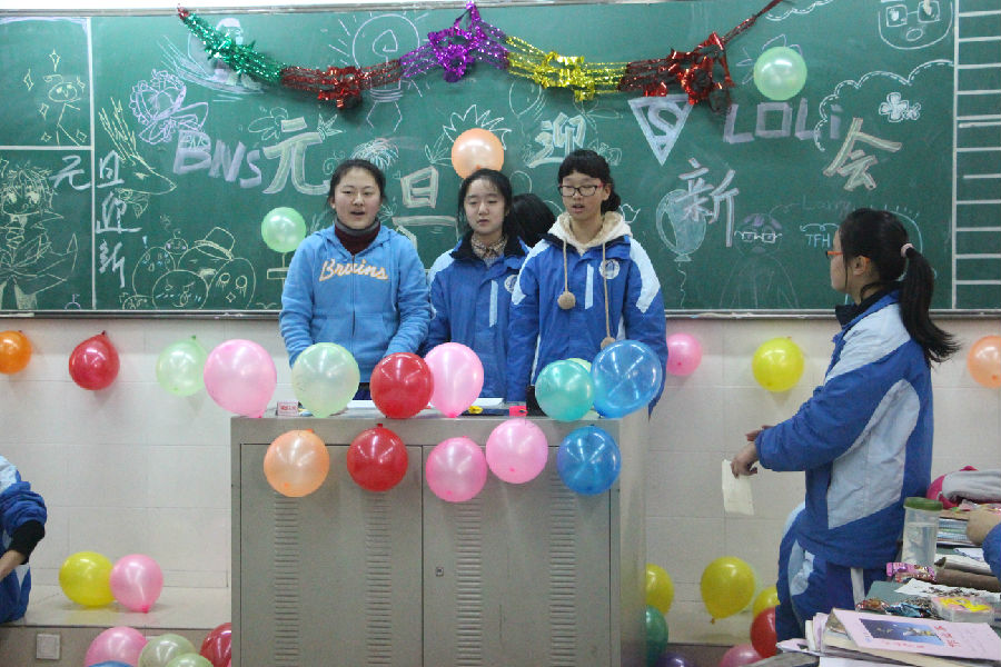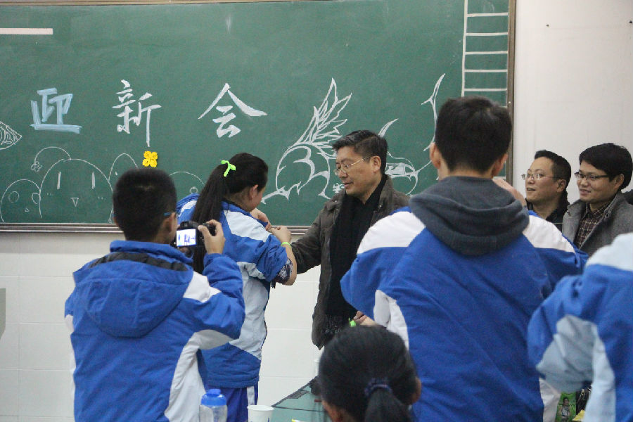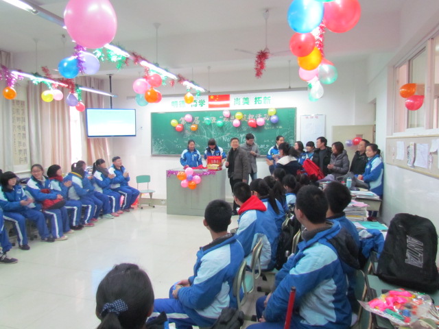 【学生处 袁野 讯】2013年12月27日下午,我校各班教室欢声笑语,其乐融融,充满了节日的喜庆气氛,各班举行了迎新年联欢活动。同学们载歌载舞,喜迎新年的到来,游戏活动更让大家捧腹大笑。刘校长带领学校干部到各班向老师和同学表示节日的慰问,并向各班赠送礼物,大家高兴极了。