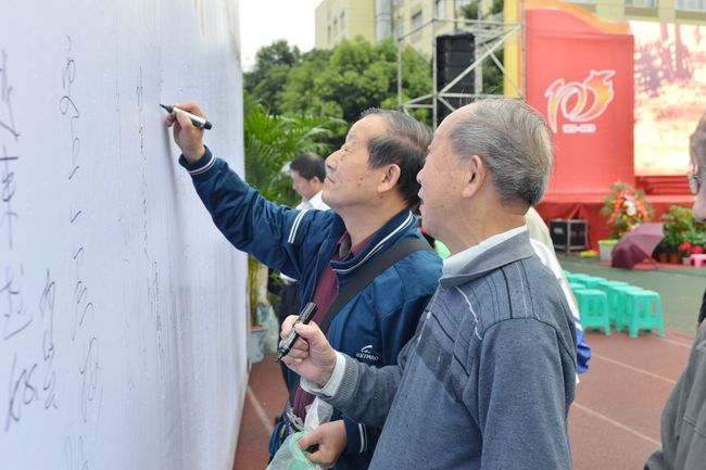 庆典上每一个节目都是精品,都有很强的艺术感染力。合唱《送别》刚唱出第一个乐句,台下的老校友已经眼含热泪。舞蹈、手风琴,独唱等等都得到了与会校友嘉宾的称赞。鼓队的同学穿着单薄的衣服站在细雨中,但他们打出了威风,打出了豪迈。台下的同学们秩序井然,坐在那里手都被雨水浸泡的麻木了,仍然坚持着与台上互动配合。庆典志愿者本着热情、细致、奉献的志愿者精神坚守在每一个岗位上,使各个环节的联络畅通及时。