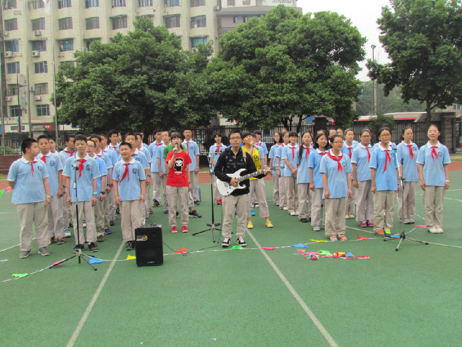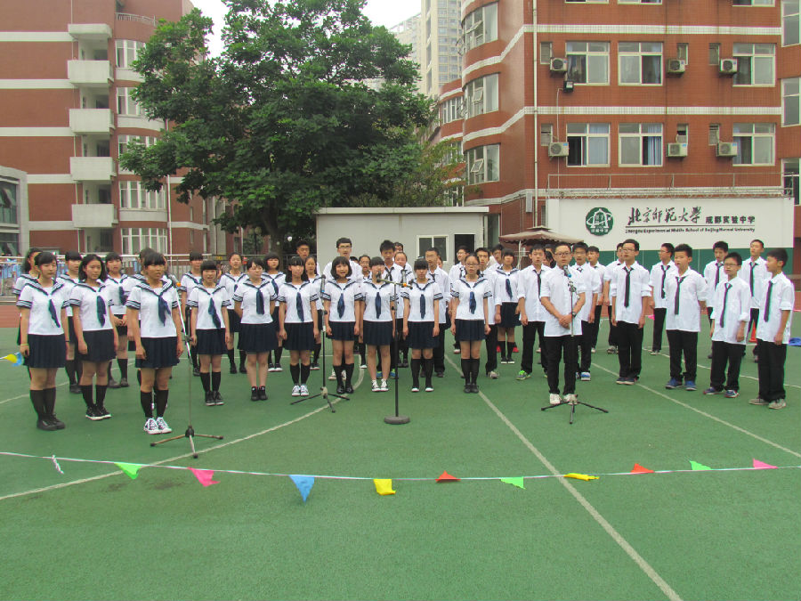 本周一、周三下午,我校第八届学生艺术节班级合唱比赛在操场举行。本次比赛打破了场地的限制,不设主舞台,让每位同学既是观众,又是演员。整个比赛进行的井然有序,初一年级每个班呈方块阵型一一排列在操场上。根据抽号定的顺序,各班依次演唱。根据规定,每个班有一首必选曲目(《中国共青团团歌》)和一首自选曲目。初一、初二年级每个班都在此次比赛中大放异彩,既唱出了气势,又唱出了自己班的个性,手势,舞蹈,武术,开唱白……每个班都从这些中彰显了他们班的特色。