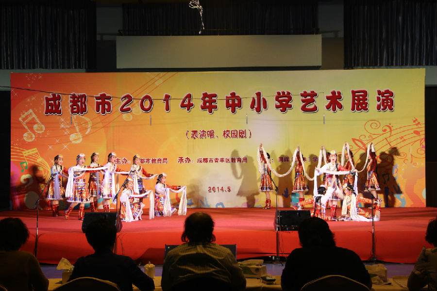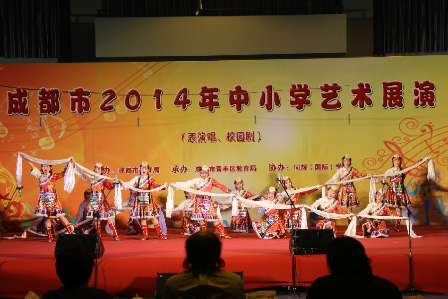 2014年5月20日下午,由刘念老师与韦旭颖老师指导的表演唱《卓玛》,经过多日的紧张训练,同学们的努力与付出终于在青羊区同辉国际学校的舞台上得到了展示,表演得到了与会专家和观众的好评,激发了学生对对艺术美的进一步追求!(记者团 陈旖婷 报道)