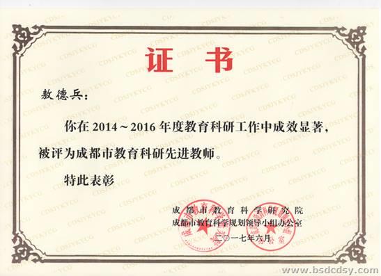 今年是我校2014年初获此殊荣后,再次获得成都市先进教育科研单位的称号。