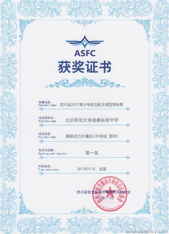 2017年11月11日上午,四川省青少年航天航空模型锦标赛(ASFC)在成都市蔚然花海拉开帷幕。来自四川省各市州学校的700多名运动员参加了此次比赛。我校凌锡帮老师带领的团队在各项赛事中奋力拼搏,取得了优异的成绩。