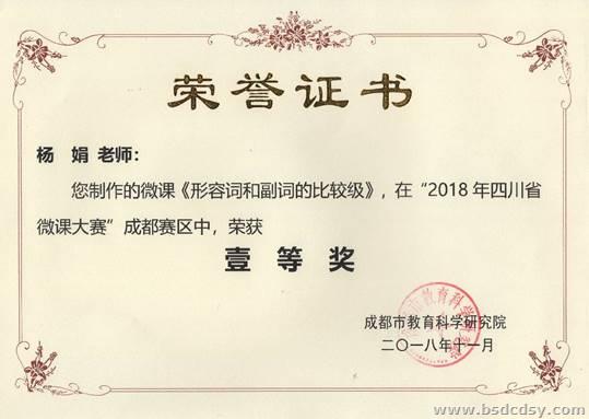 在本次大赛中,我校11名教师在初赛平台(wkzy.scjks.net)注册参加了比赛。经过注册、实名认证两个环节后,老师们各自登记了自己所选的课题,根据知识点分别准备了自己的参赛作品,在规定时间之内在平台上上传了各自的微课与配套练习。初赛展示过程中,全省教师、学生通过在线浏览进行了投票,最后由成都市教科院组织专家对所有初赛作品进行评审。最终,我校李阳老师制作的《整式的加减()合并同类项》,刘琢老师制作的《古代常用敬谦辞辨析及运用》,杨娟老师制作的《形容词和副词的比较级》,熊继刚老师制作的《直线和圆的位置关系》,等四堂微课斩获了成都赛区一等奖,其中李阳老师和刘琢老师的作品直接收录为"成都数字学校"2018年课程资源;梁翠梅老师制作的《认识质量》,邱太苹老师制作的《从三个方向看物体的形状》摘取了成都赛区二等奖;袁蕾老师制作的《敬辞与谦辞》,黄霞老师制作的《中心对称图形》,程熹老师制作的《Unit l Whats  the  matter?》,阳林老师制作的《动物在生物圈中的作用》,凌洁老师制作的《省级行政区,智勇大冲关》收获了成都赛区三等奖。其中李阳、刘琢两位老师还被推荐参加省级评比,同时录入成都数字学校资源库。