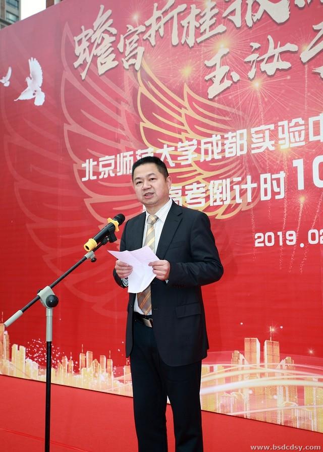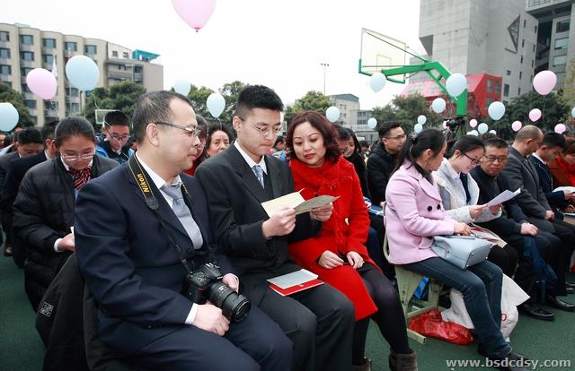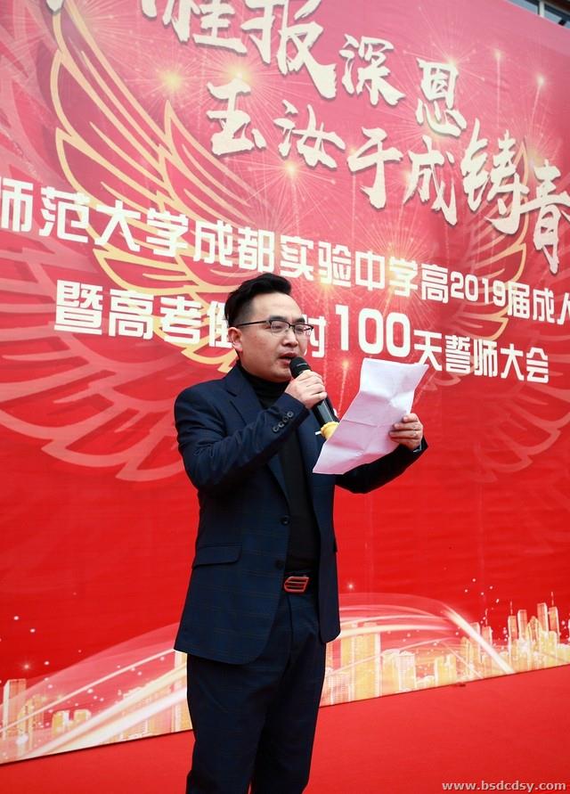 紧接着,高2019届全体老师上台致辞,老师们对同学们表示祝贺,告诫大家不忘初心有担当,砥砺自我敢奋进,挥洒汗水方能胸有成竹。