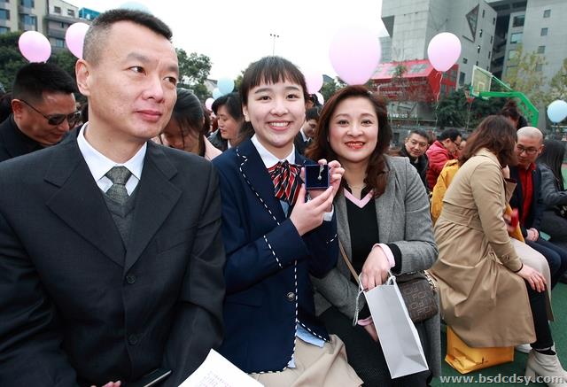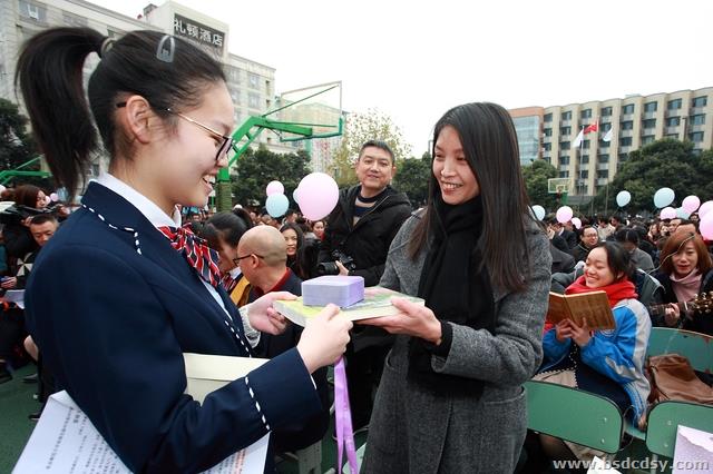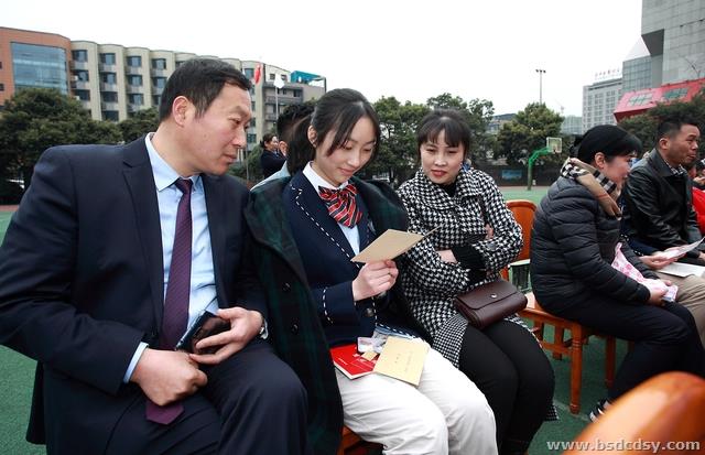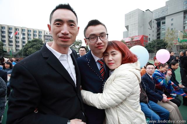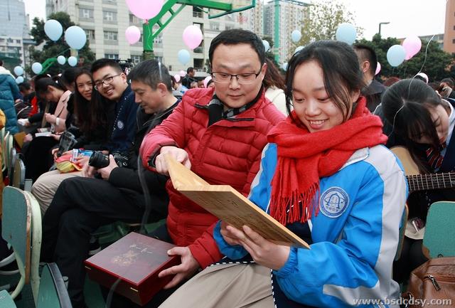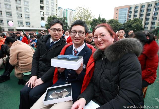 老师指引前行,父母则是坚实的后盾。同学们与父母互动的场景将大会推向了第一个高潮。一封书信,一纸浓情。同学们阅读完父母的书信以后,陈曦、段坤然、周连浩、方浩旭四位同学的家长分别上台发言,分享了与子女的温暖瞬间,并对孩子们给予了深切的期望。全体家长将精心准备的千纸鹤、手表、剃须刀等礼物送给孩子。感悟着父母深沉的爱意,许多同学早已眼眶湿润。父母与子女的深情拥抱,温暖了整个会场。