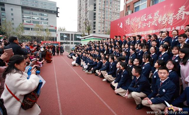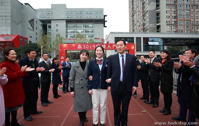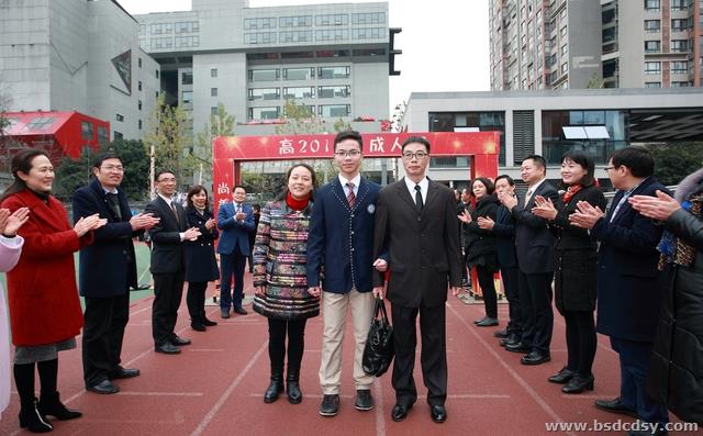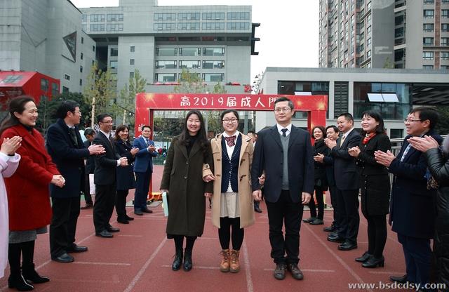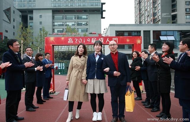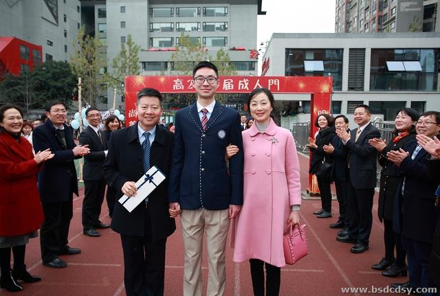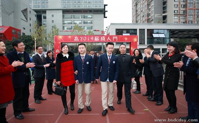 跨越成人门意味着长大,意味着担当。在老师们的保驾护航下,家长携手自己的孩子跨过成人门,开启新的起点。走过孩提的幼稚,挥别垂髫的无知,回望束发的青涩,笑别及笄的疑迟,同学们雄姿英发,斗志昂扬,以自信之姿感染了全场。