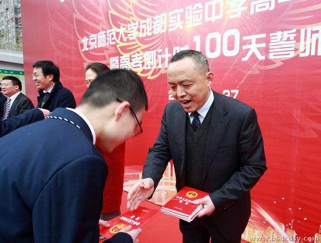 十八岁,意味着成为法律意义上的独立主体,意味着担当。国歌奏唱之后,学校全体管理干部为同学们颁发宪法。接过这份沉甸甸的礼物,同学们即将担负起成年人的责任,担负起时代的重担。手捧宪法,正对国旗,同学们高举右手庄严宣誓。誓毕,校党委副书记刘明俊老师代表刘增利校长讲话,刘校长鼓励同学们拼搏奋进,敢于担当,并祝福同学们六月炎夏传递佳音。