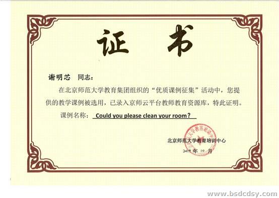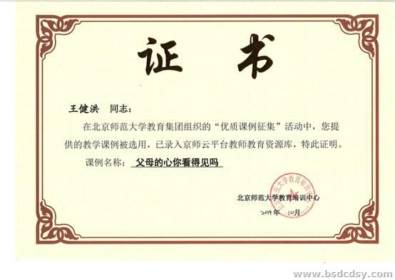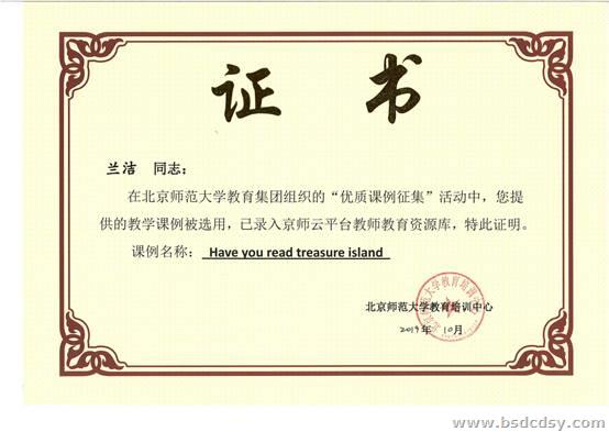 刚刚,从北京师范大学教育培训中心传来喜讯,在北京师范大学教育集团组织的“优质课例征集”活动中,我校推送的王健洪老师的“父母的心你看得见吗”、张勤老师的“弧长及扇形面积”、许佳莉老师的“羌族刺绣图案”、兰洁老师的“Have you read treasure island”、谢明芯老师的“Could you please clean your room?”、凌锡帮老师的“认识传感器”等六个课例成功入选,录入了京师云平台教师教育资源库。特向全校老师报喜。