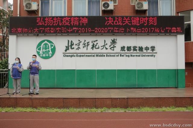 典礼过程中,学生处副主任蔡怡就我校防疫期间的学生一日流程、通风、清洁、消杀等管理措施进行了详细的说明。副校长张文勇补充道,每一位师生要仔细阅读我校编制的《新冠肺炎防控复学手册》,以便清楚各环节防疫细节。