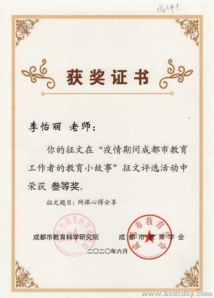 我校五位老师在“疫情期间成都市教育工作者的教育小故事”征集活动中获奖
