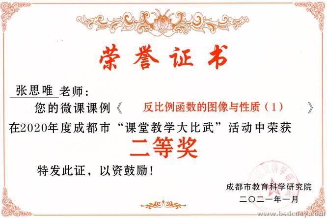在成都市2020年“课堂教学大比武”活动的中,继我校教师在完课评比斩获成都市一等奖4个、二等奖12个、三等奖17个后,又传来微课评比的喜讯,杨娟老师参评的微课《形容词和副词的比较级》、程熹老师参评的微课《What's the matter with you? 》、吴霞老师参评的微课《线段、直线、射线的异同》、张思唯老师参评的微课《反比例函数的图像与性质(1)》、刘盛华老师参评的微课《人脸检测代码阅读》、邱太苹老师参评的微课《从三个方向看物体形状》等六个微课获得本次大赛的二等奖;谢婷老师参评的微课《托物言志与象征》、周芸老师参评的微课《美女蛇故事之神秘?——跟鲁迅学习讲故事》、张璇老师参评的微课《对比手法—以<邓稼先>为例》、李涵娟老师参评的微课《 Unit 1 What's the matter? Section B 2a-2c》、刘琢老师参评的微课《绘形摹神 品物观志》、袁蕾老师参评的微课《敬辞与谦辞》、熊继刚老师参评的微课《直线与圆的位置关系》、周华敏老师参评的微课《我国工业分布》、刘辉老师参评的微课《古代中国的农业经济》、黄霞老师参评的微课《代数式》等十个微课获得本次大赛的三等奖。