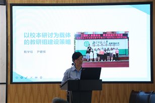 我校初中数学组教研组长尹碧辉老师以《以校本研讨为载体的教研组建设策略》为题做了分享交流。近年来,我校数学教研组逐步形成了“以校本教研促进教师专业化发展”的教研特色。就教研组的建设,尹老师谈到以下几点感悟和经验做法:(一)合作共赢,凝聚智慧。包括:重视集体备课、优化课堂教学、关注生活、强化应用、资源共享、辐射蓉城、关注教师个人成长;(二)终身学习,持续发展。教研组借助北京师范大学附属学校这一平台的力量向专家学习,向身边优秀的老师学习,向书本学习。数学组承担的科研课题《基于核心素养下对初一学生数学运算能力的策略与研究》被立项为 2021年度北京师范大学“凝智计划”国家高端智库基础教育内设课题;(三)校本研讨。教研组用了一年半时间完成每个老师的专题分享,在学校的大力支持下,专题《初中数学压轴题破题策略》将会于近期正式出版发行。