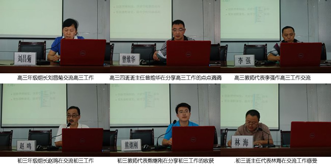 会议还安排了高三年级组长刘昌菊、高三班主任代表王健洪和曾维华、高三理综组长张惠模、高三文综老师李 强、初三年级组长赵鸣、初三数学老师熊继刚、初三班主任林海等老师交流了初高三工作的点点滴滴,分享了我校今年中高考的成果。